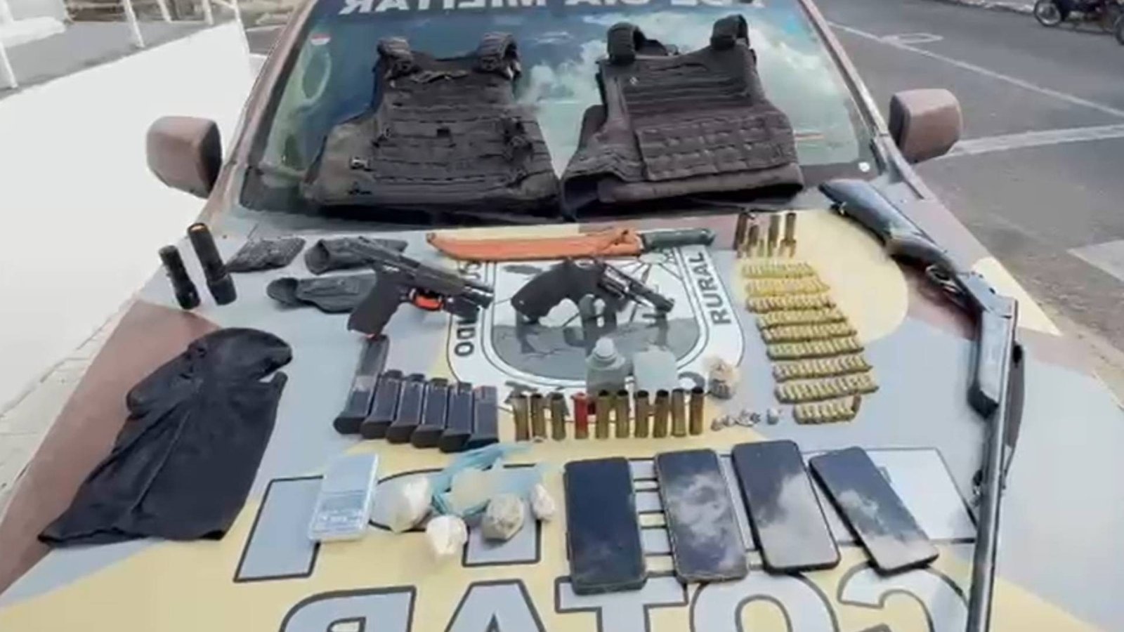 Com os dois mortos, os PMs apreenderam um revólver calibre .38, uma espingarda calibre 20 e uma pistola calibre .40, além de 121 munições de calibres variados e 117 gramas de drogas, entre maconha e cocaína. Um dos mortos já respondia por tentativa de homicídio, organização criminosa e por um homicídio ocorrido em julho de 2025.